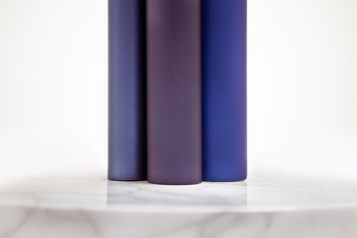It’s made of six tubes of different diameters, joined together on a disc-shaped base of highly polished, glossy Carrara marble. The painted steel tubes diverge at various heights.